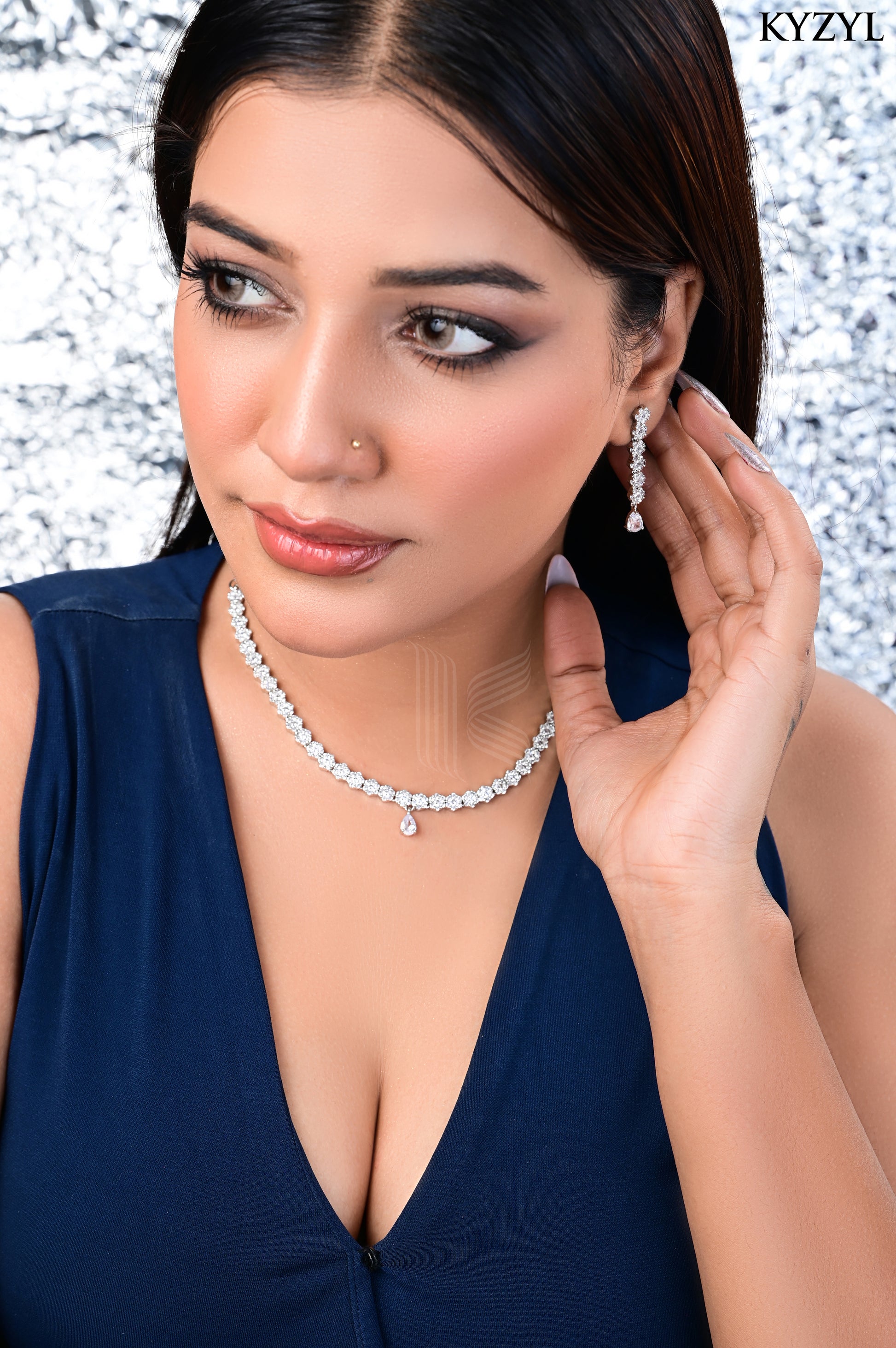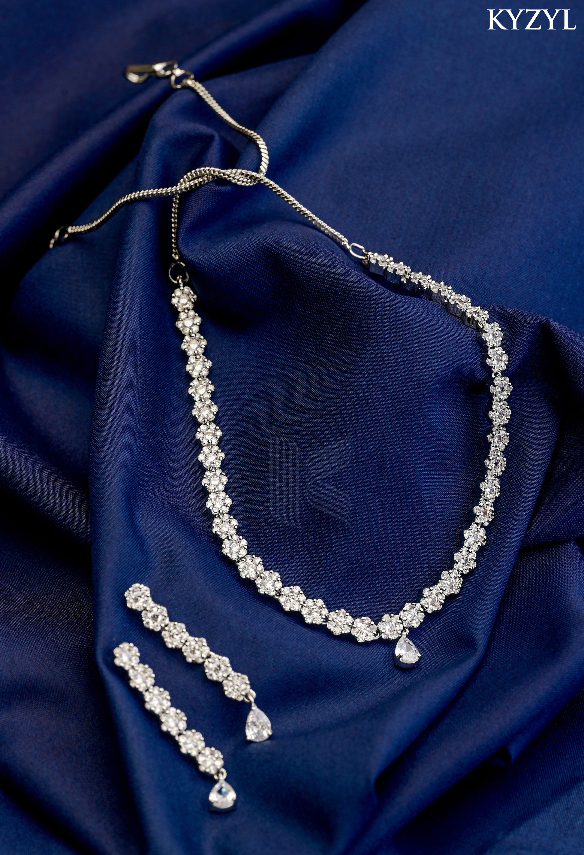 Paired with matching teardrop earrings, the Cluster Teardrop Necklace Final offers a complete and sophisticated look, perfect for weddings, parties, and memorable celebrations.