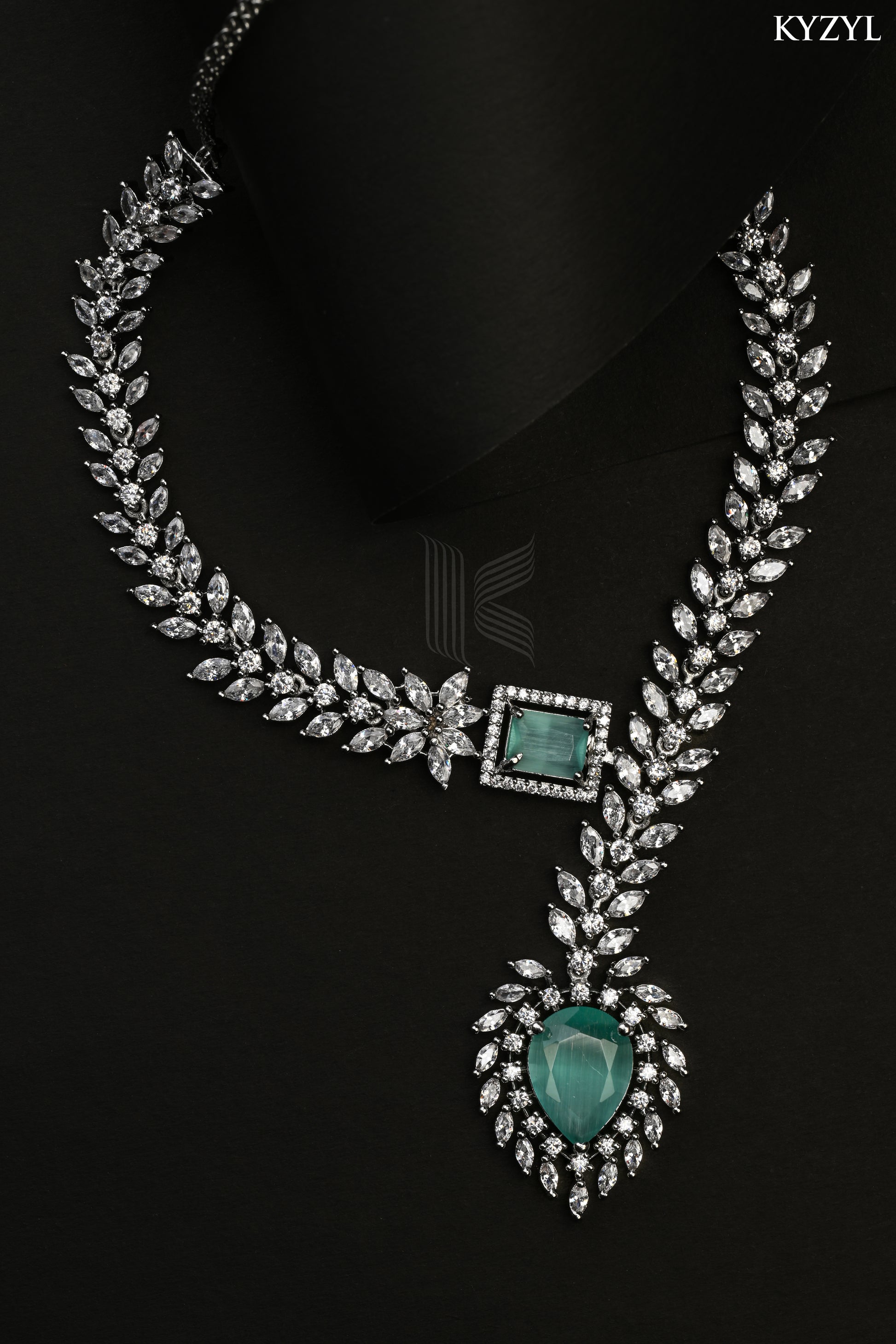 The Empress’s Garland Mint Green is a graceful jewellery set inspired by royal garland motifs and serene pastel hues. Designed to exude elegance and charm, this piece blends traditional aesthetics with a refreshing contemporary appeal.