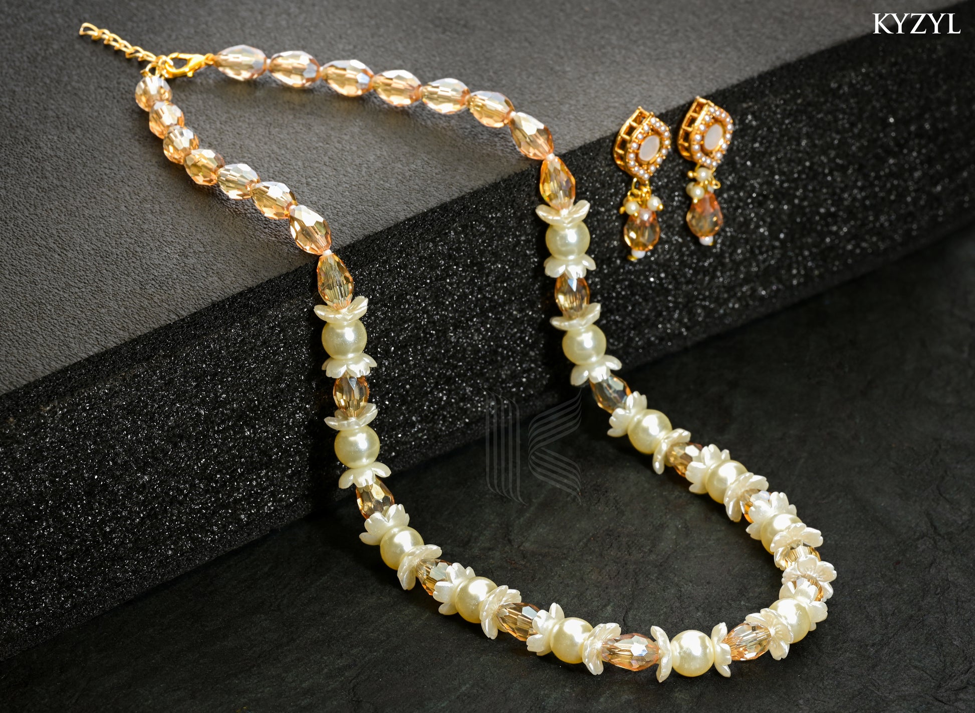 Complete with perfectly matched earrings, the Golden Dusk Mala Final is an ideal choice for festive celebrations, weddings, and special occasions, adding timeless grace to any jewellery collection.